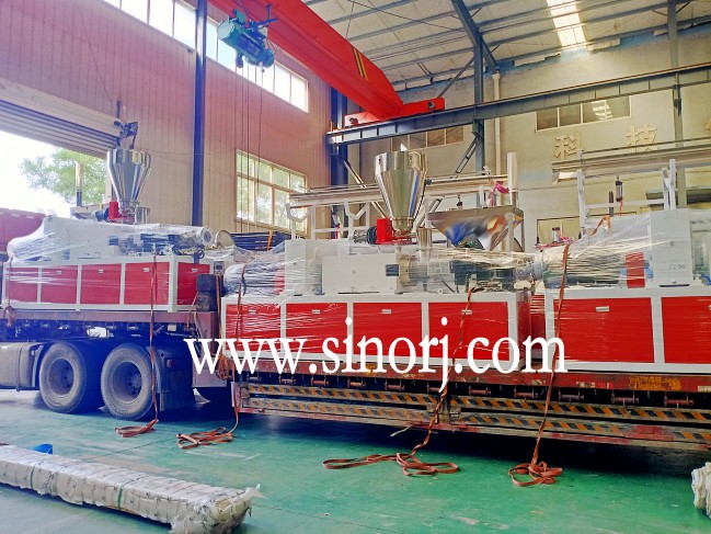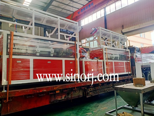 四條PVC格柵板生產(chǎn)線板車發(fā)貨中